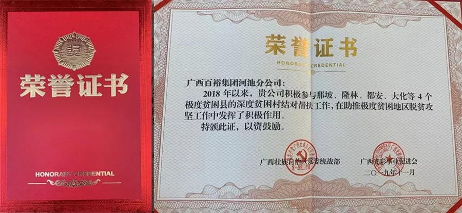 百裕集團(tuán)河池分公司作為環(huán)江馴樂鄉(xiāng)鎮(zhèn)北村結(jié)對(duì)幫扶企業(yè),在扶貧攻堅(jiān)工作中突出貢獻(xiàn)受到表揚(yáng)。