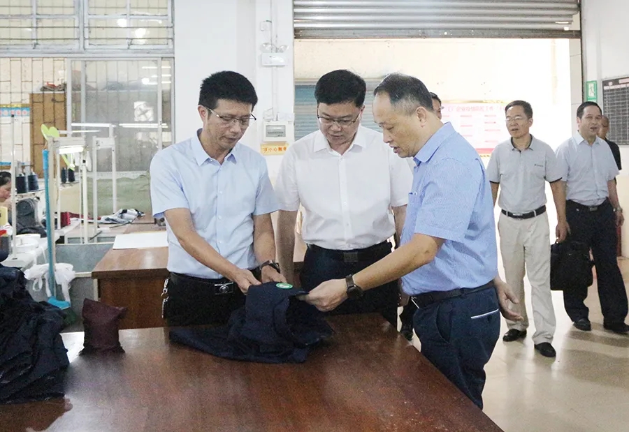 梁藝光副廳長一行人先后參觀了校服文化展示中心、服裝生產(chǎn)車間,期間曾晏來總經(jīng)理向梁藝光副廳長詳細介紹了公司疫情防控工作的落實情況,及復(fù)工復(fù)產(chǎn)、公司經(jīng)營發(fā)展的情況,表示在疫情期間一定繼續(xù)做好防控措施,保障員工健康安全,確保企業(yè)生產(chǎn)經(jīng)營有序開展。