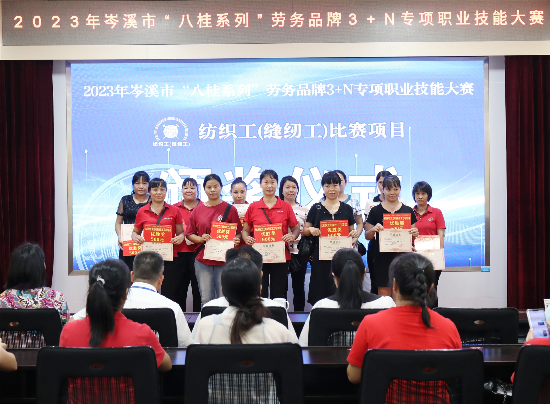 百裕世紀 (集團)有限公司線下車間職工超麗榮獲紡織工 (縫工)比賽項目的一等獎;羅婷婷、陳杏娟2位職工榮獲二等獎;梁鳳、羅獻鳳、覃廣英、莫清云、廖芬藝5位職工榮獲三等獎;陳海蘭、陳志平、張紅潔等12名職工榮獲優(yōu)勝獎。