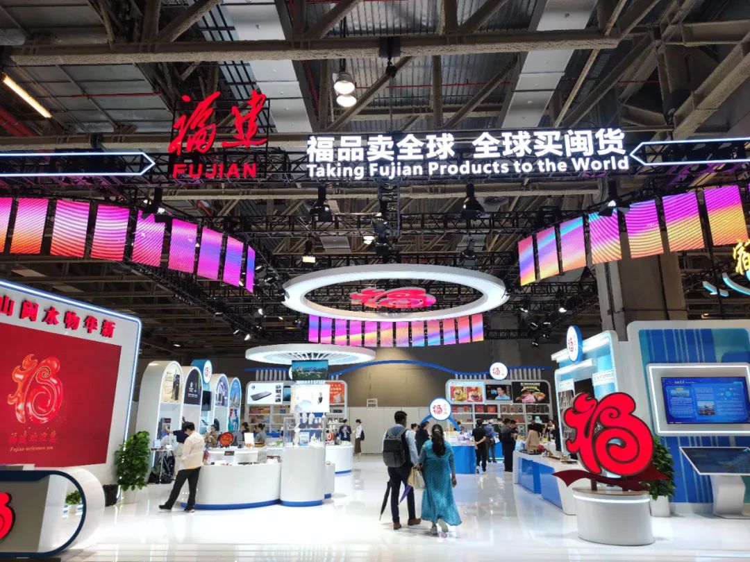 福建館以“福品賣全球、全球買閩貨”為主題,突出“福文化”,設(shè)置了“1+5”展區(qū),分別為福建形象展示區(qū)和福味飄香、福享食尚、福茶生活、福見商旅、福潮國風(fēng)等“五?!闭箙^(qū),福建福品類別中的消費品品牌企業(yè)帶來了福品知名品牌、地標性產(chǎn)品、老字號品牌和福品“新秀”等百余款福品好物。此外,福建館在展陳方式上進一步創(chuàng)新,通過智能算法、手勢感應(yīng)等前沿技術(shù)以及老字號美食現(xiàn)場制作、品鑒等,讓福建館更具科技性、互動性、參與性。