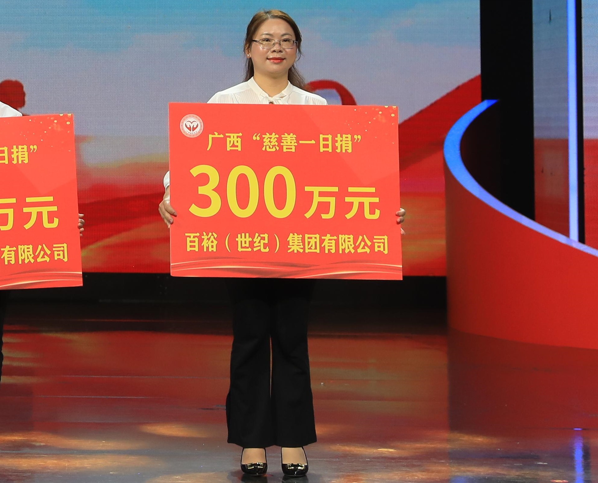 9月5日是我國第九個“中華慈善日”,在這個充滿愛與希望的日子里,百裕集團(tuán)積極參與南寧市民營企業(yè)家聯(lián)合會發(fā)起的廣西“慈善一日捐”捐贈活動,并向廣西慈善總會捐款300萬元!百裕集團(tuán)用自己的實(shí)際行動為慈善公益事業(yè)盡力,彰顯了無私奉獻(xiàn)的大愛情懷,傳遞了正能量,為廣西慈善扶貧救助事業(yè)奉獻(xiàn)愛心,助力新時代壯美廣西美好家園的建設(shè)。中華慈善日,不僅僅是一個紀(jì)念日,更是一個行動的號角,召喚著我們每個人都投身慈善事業(yè)中,用愛去溫暖世界,用善去傳遞希望。9月5日晚,由自治區(qū)民政廳、廣西慈善總會在廣西廣播電視臺舉行的以“崇德向善 依法興善”為主題的第九個“中華慈善日”主題宣傳暨廣西“慈善一日捐”現(xiàn)場捐贈儀式上,自治區(qū)民政廳黨組書記、廳長黃武海,廣西慈善總會會長、自治區(qū)政協(xié)第十一、十二屆原副主席劉正東等領(lǐng)導(dǎo)出席活動。
