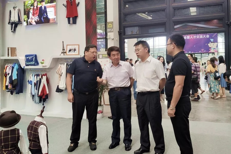 百裕集團(tuán)工作人員向現(xiàn)場來賓講解百裕校園時(shí)代當(dāng)季服裝的品牌理念和款式設(shè)計(jì)。時(shí)尚美觀又不乏個(gè)性的校園服飾引起了現(xiàn)場觀眾濃厚的興趣,大家紛紛駐足觀看、詢問交流。期間,工作得到了各級(jí)領(lǐng)導(dǎo)的現(xiàn)場指導(dǎo)。