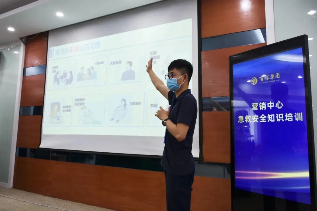 為加強營銷中心員工應(yīng)急救援意識,增強員工健康意識,3月27日,百裕集團(tuán)營銷中心按照年度培訓(xùn)計劃組織員工開展了《急救知識及安全教育》培訓(xùn)。