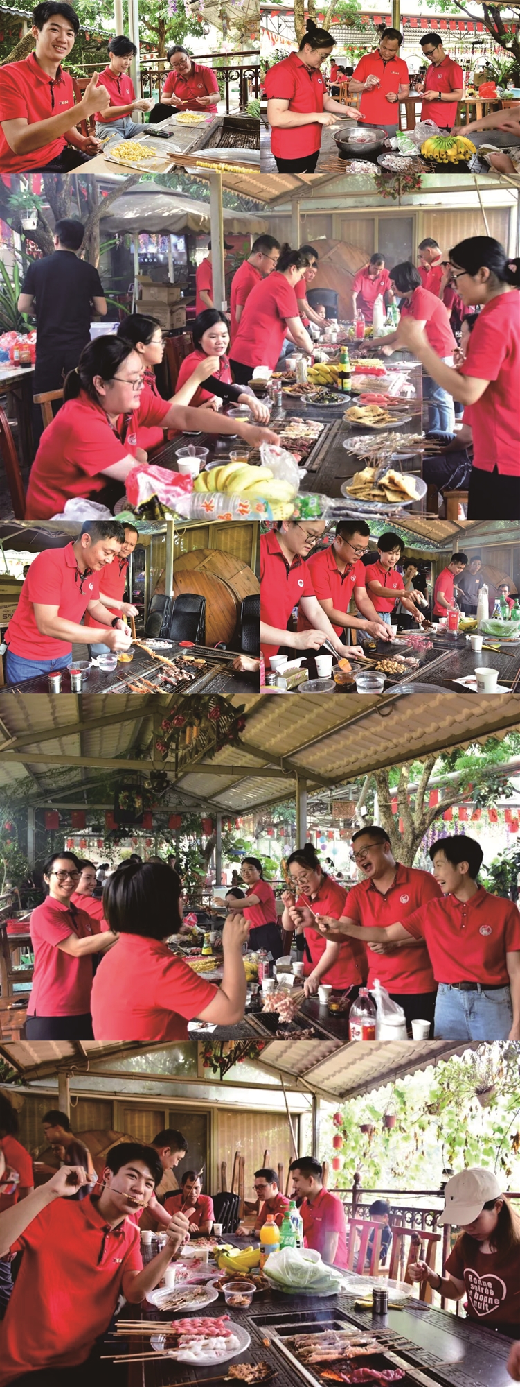 活動(dòng)在農(nóng)莊開展,公司提前給員工準(zhǔn)備了酸辣的鳳爪,爽脆的青瓜,涼拌木耳等,都引誘著同事們饑腸轆轆的胃,讓人垂涎。在燒烤過程中員工們互相配合洗菜、串肉、生火、加炭,場面好不熱鬧。大家都拿出了“十八般武藝”,充分展示出自己的動(dòng)手能力和美食鑒賞能力,在制作和分享美味的過程中,每個(gè)人笑容滿面,洋溢著喜悅的氣氛。