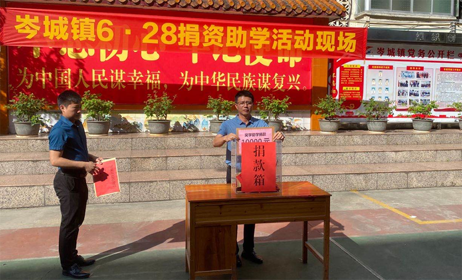 在岑城鎮(zhèn)6.28捐資助學(xué)活動現(xiàn)場中百裕集團捐款10000元,同時捐款10000元用于岑城鎮(zhèn)脫貧攻堅事業(yè),助力扶貧攻堅戰(zhàn)役!