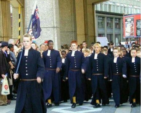 歐洲的校服仍然維持著它一直以為低調(diào)和貴族的傳統(tǒng),被譽為最正統(tǒng)的校服,沿用了多年的皇室制服款式。英國校服款式經(jīng)典、簡潔大方,中學生必須穿著正統(tǒng)西式校服,男生為正統(tǒng)西裝、正規(guī)皮鞋、需要佩戴領帶,女生也是統(tǒng)一西式正統(tǒng)服裝、正規(guī)女式皮鞋、必須佩戴領花,不論是?;?、帽徽,無一不顯示著英國人特有的風度和氣質(zhì)。也不知是歐洲的學生更嚴肅還是校方更強硬,他們的態(tài)度似乎是“學生就要穿得像個學生的樣子”。他們對校服的重視程度也不輸給日本,認為校服是培養(yǎng)學生紀律意識最直接的手段。