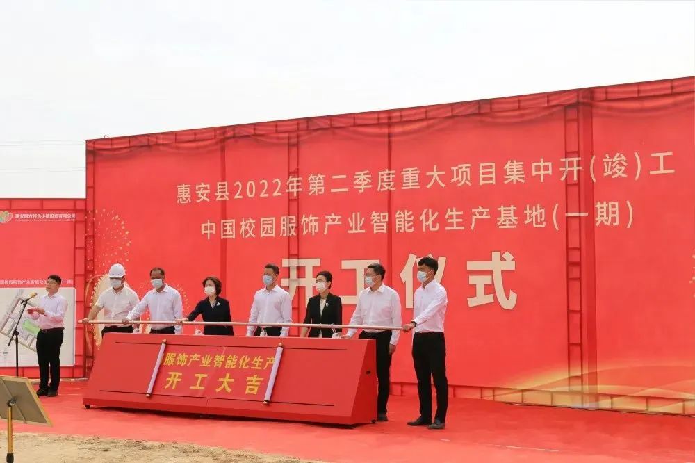 4月13日上午9時許,城南工業(yè)區(qū)(中國校園服飾產(chǎn)業(yè)基地)內(nèi),惠安縣隆重舉行中國校園服飾產(chǎn)業(yè)智能化生產(chǎn)基地一期項目開工儀式。中共惠安縣委書記王春雷,縣政協(xié)主席許貞麗,縣委副書記黃麗瓊,縣委常委、常務(wù)副縣長蔡旭萌、螺陽鎮(zhèn)黨委王海演書記、鎮(zhèn)長林少杰和項目業(yè)主代表辛景文等出席開工儀式并共同為項目開工推桿啟動。副縣長郭惠卿主持開工儀式并介紹項目情況。
