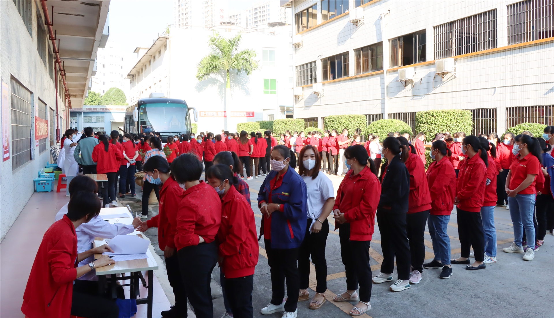 本次送健康體檢服務(wù),由廣西壯族自治區(qū)總工會陸川溫泉療養(yǎng)院的12名醫(yī)護(hù)人員上門開展,10月14日一早,體檢醫(yī)護(hù)車開進(jìn)了百裕工業(yè)園,為百裕200多名一線產(chǎn)業(yè)工人提供:血液化驗(yàn)、B超、肝/腎功能、心電圖、DR胸部影像、癌癥篩查等12項(xiàng)體檢內(nèi)容。