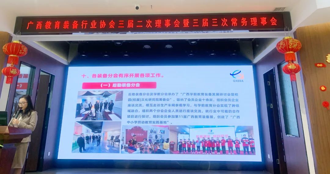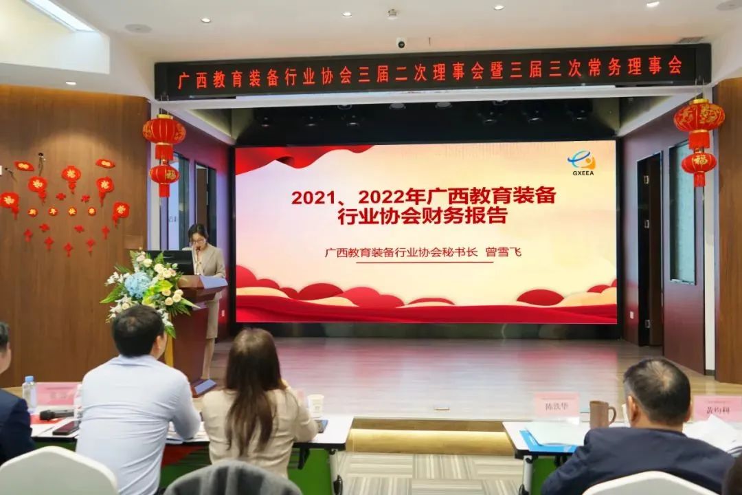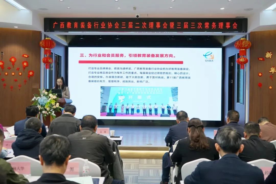 2023年2月16日,廣西教育裝備行業(yè)協(xié)會(huì)三屆二次理事會(huì)暨三屆三次常務(wù)理事會(huì)圓滿召開。協(xié)會(huì)會(huì)長(zhǎng)、常務(wù)副會(huì)長(zhǎng)、常務(wù)理事、理事以及部分特邀企業(yè)代表共100多人參加會(huì)議。區(qū)教育廳、南寧市、崇左市、玉林市、貴港市、欽州市等市縣教育裝備站領(lǐng)導(dǎo)蒞臨會(huì)議指導(dǎo)。