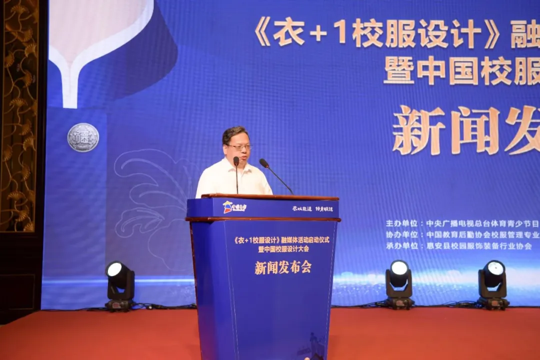 為全面貫徹黨的二十大和二十屆二中、三中全會(huì)以及中央經(jīng)濟(jì)工作會(huì)議精神,貫徹落實(shí)習(xí)近平總書記“引導(dǎo)青少年扣好人生第一??圩印钡闹匾甘?,落實(shí)立德樹人的根本任務(wù),提升我國校服設(shè)計(jì)水平,融合并弘揚(yáng)中華優(yōu)秀傳統(tǒng)文化,加強(qiáng)中小學(xué)生審美教育,全方位推動(dòng)中國校服產(chǎn)業(yè)高質(zhì)量發(fā)展。8月31日上午,由中央廣播電視總臺體育青少節(jié)目中心《大風(fēng)車(異想天開)》欄目主辦,中國教育后勤協(xié)會(huì)校服專業(yè)管理委員會(huì)協(xié)辦的《衣+1校服設(shè)計(jì)》融媒體活動(dòng)啟動(dòng)儀式暨中國校服設(shè)計(jì)大會(huì)新聞發(fā)布會(huì)在惠安舉行。中央廣播電視總臺福建總站黨委書記田忠卿、教育部關(guān)心下一代工作委員會(huì)副主任兼秘書長張文忠、惠安縣人民政府縣長莊稼祥、中央廣播電視總臺體育青少節(jié)目中心制片人梅龍、中國教育后勤協(xié)會(huì)校服專業(yè)管理委員會(huì)副主任劉強(qiáng)、惠安縣人民政府副縣長郭惠卿等領(lǐng)導(dǎo)嘉賓以及行業(yè)協(xié)會(huì)、專家學(xué)者、校服企業(yè)有關(guān)代表出席;參加活動(dòng)的還有100多個(gè)惠安縣本地及全國的校服設(shè)計(jì)團(tuán)隊(duì),20余所中小學(xué)校師生代表、家長代表等。