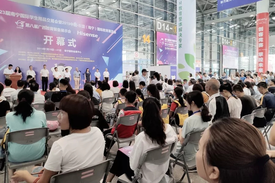 2019年7月19日,由南寧市人民政府、中國國際貿(mào)易促進(jìn)委員會廣西分會主辦,由廣西教育裝備行業(yè)協(xié)會、南寧市教育局、南寧市人力資源和社會保障局、南寧市文化廣電和旅游局等承辦,由南寧市人才服務(wù)管理辦公室協(xié)辦的“第23屆南寧國際學(xué)生用品交易會暨2019中國·東盟(南寧)國際教育展覽會、第八屆廣西教育裝備展示會”,在南寧國際會展中心正式開幕。展示會從7月19日--21日共三天時間,來自全國各地教育裝備企業(yè)齊聚南寧,共襄盛會。