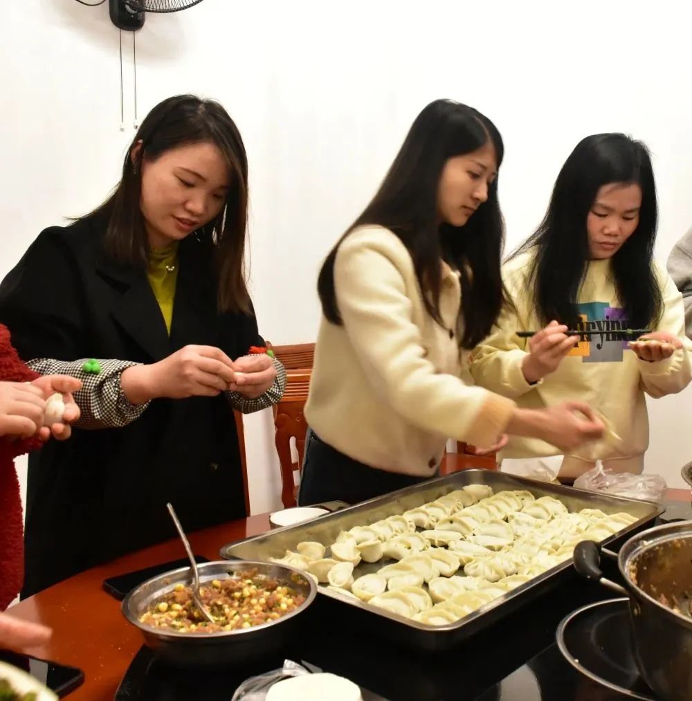 餐廳里歡聲笑語,熱鬧非凡,大家邊包餃子邊拉家常,相互觀摩學(xué)習(xí),加深了彼此的交流,拉近了彼此的距離,增進(jìn)了彼此的感情。