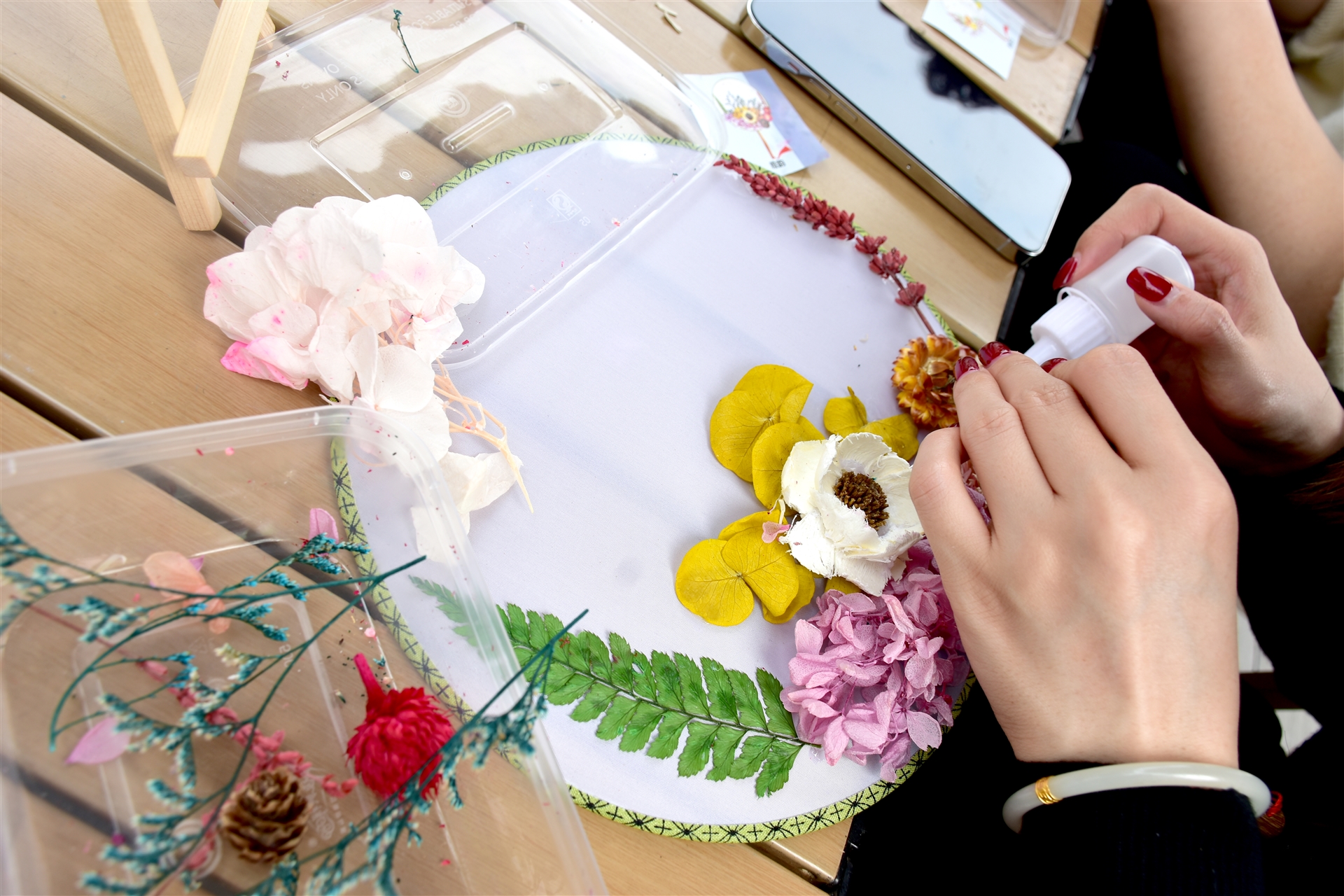 “做扇輕搖香杳杳,輕搖寶扇動(dòng)香風(fēng)”。整個(gè)活動(dòng)中,大家歡聲笑語(yǔ)不斷,每個(gè)人融合自己的創(chuàng)意、發(fā)揮想象力,用一花、一葉、一妙手在素白的扇面上,創(chuàng)作出兼具觀賞性和實(shí)用性的團(tuán)扇作品,傳承中華非遺之美。
