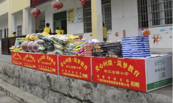 5月26日,河池分公司走進(jìn)環(huán)江大安鄉(xiāng)金橋希望小學(xué),為孩子們送去文體用品和愛心校服,學(xué)校全體師生參加了此次捐贈(zèng)活動(dòng)。